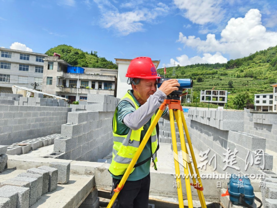 主要工人使用水平仪来校准墙壁。图片提供:通讯员
